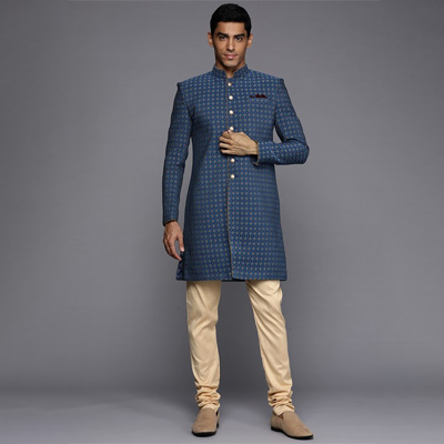Blue & Cream-Coloured Ethnic Motifs Sherwani