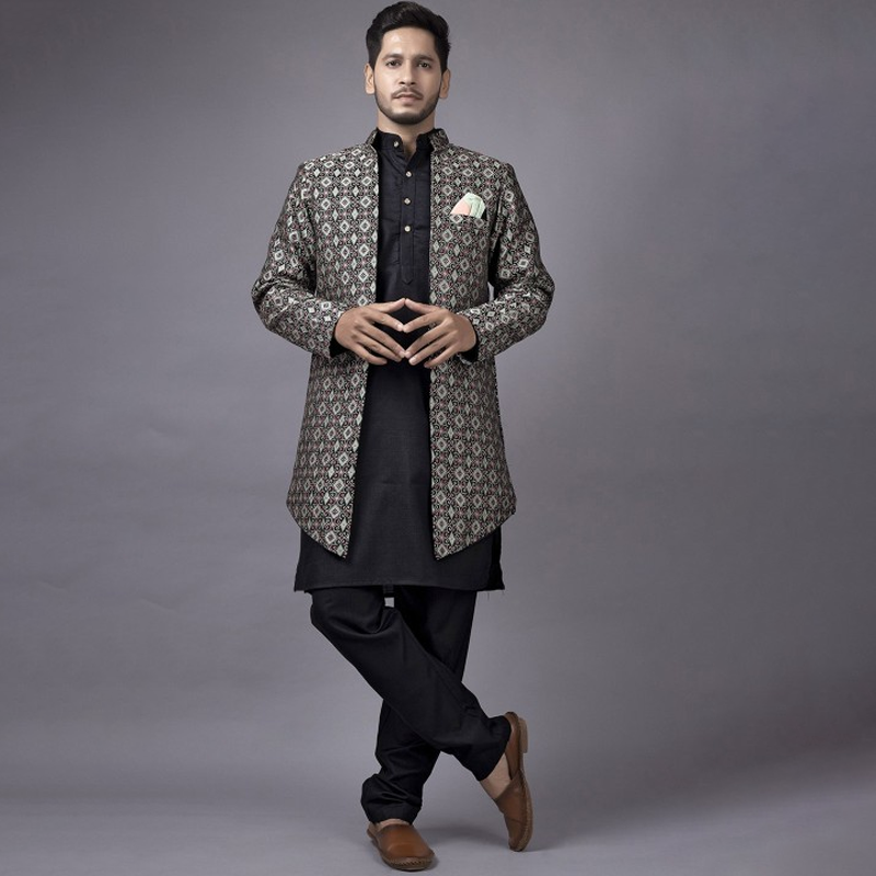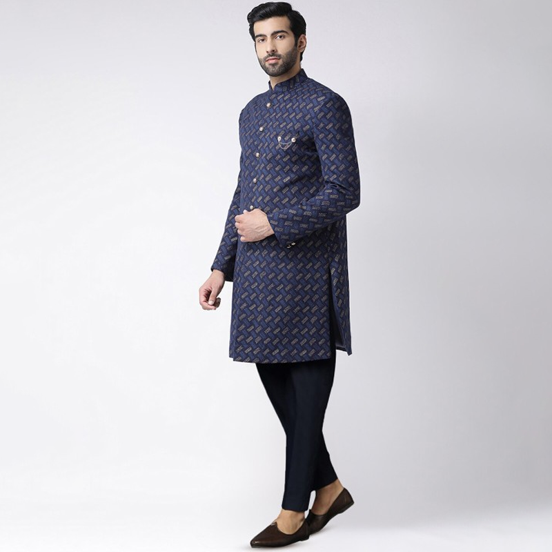 Men Gold-Coloured Embroidered Silk-Blend Ethnic Dhoti