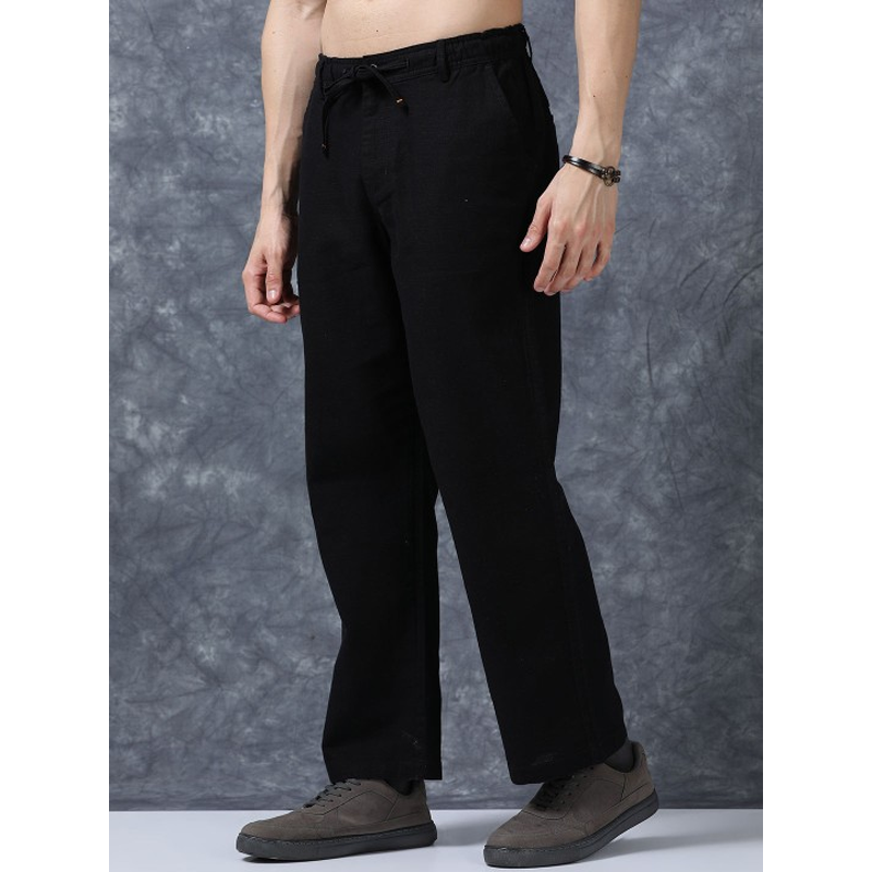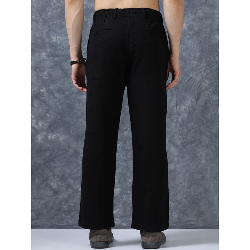 Brown woven trousers Loose fit Mid-rise Length: regular Pattern: solid Pleated design Feature: easy wash 4 pockets Size & Fit Fit: Loose Fit The model (height 6') is wearing a size 32 Material & Care Polyester/4-Way Lycra Machine Wash