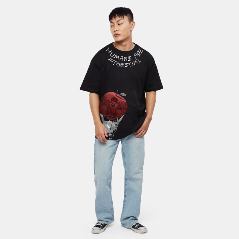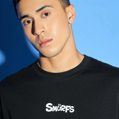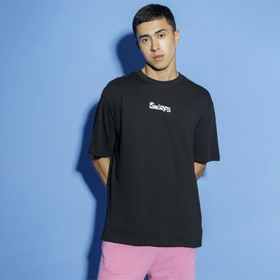 "Black Tshirt for men Humour and comic printed Regular length Round neck Short, drop-shoulder sleeves Knitted cotton fabric Size & Fit Loose The model (height 6') is wearing a size M Material & Care Cotton Machine Wash"