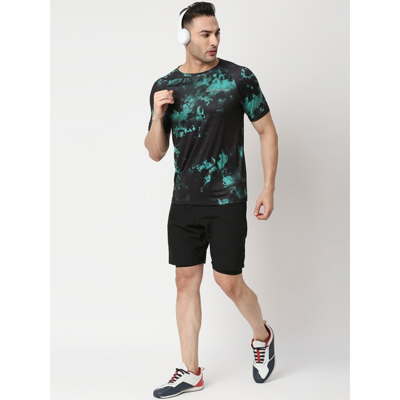 "Grey printed mid-rise regular shorts, has 4 pockets, button closure
