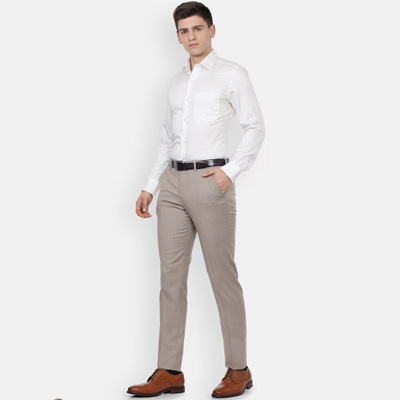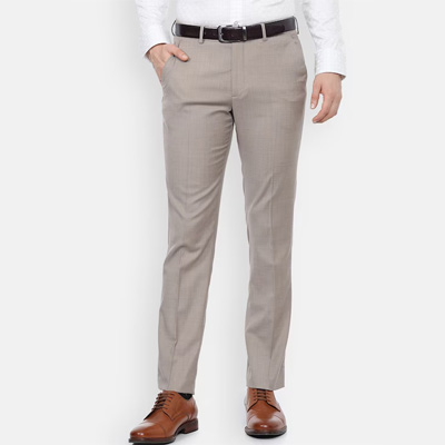 "Waist Rise : Mid-Rise Length : Regular Fit : Slim Fit Print or Pattern Type : Solid Closure : Button Type of Pleat : Flat-Front"