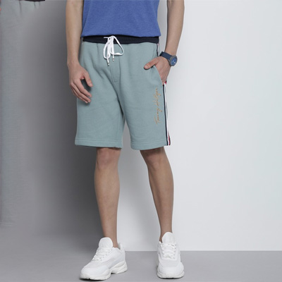"Waist Rise : Mid-Rise Length : Knee Length Type : Regular Shorts Closure : Drawstring Print or Pattern Type : Typography Fit : Regular Fit"