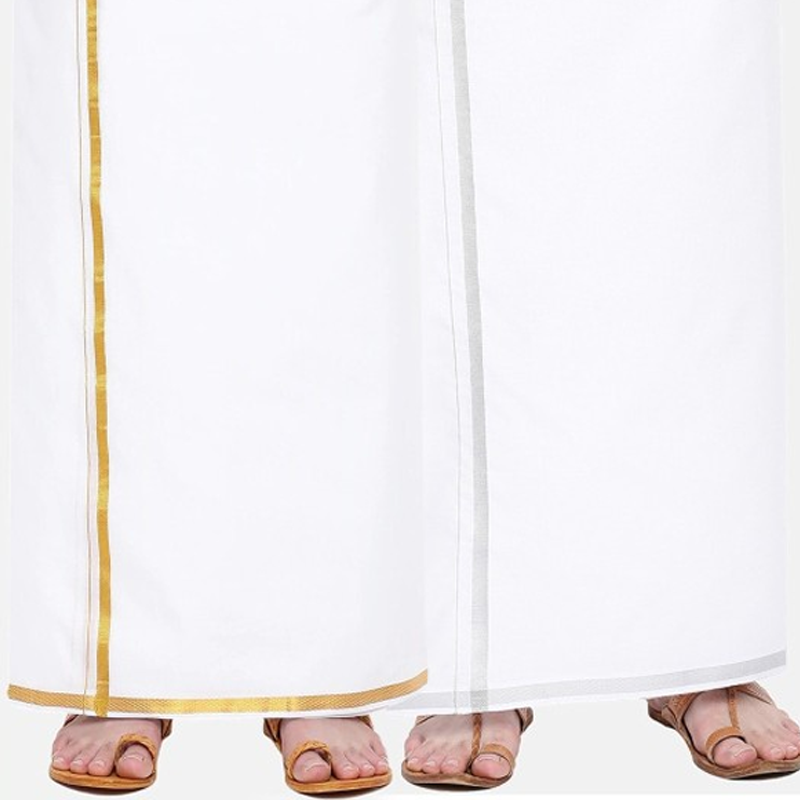 Hand Wash""Pack of 2 Solid mid-rise dhoti, has silver-coloured zari border