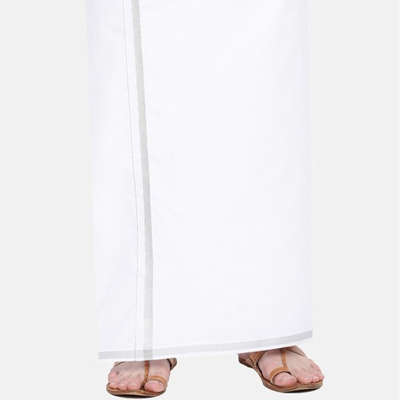 Pack of 2 Solid mid-rise dhoti, has silver-coloured zari border