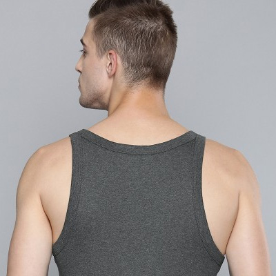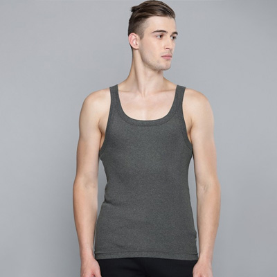 Grey Melange solid innerwear vests, has a scoop neck, sleeveless