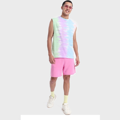 "White & blue tie & dye innerwear vest, has a round neck and sleeveless