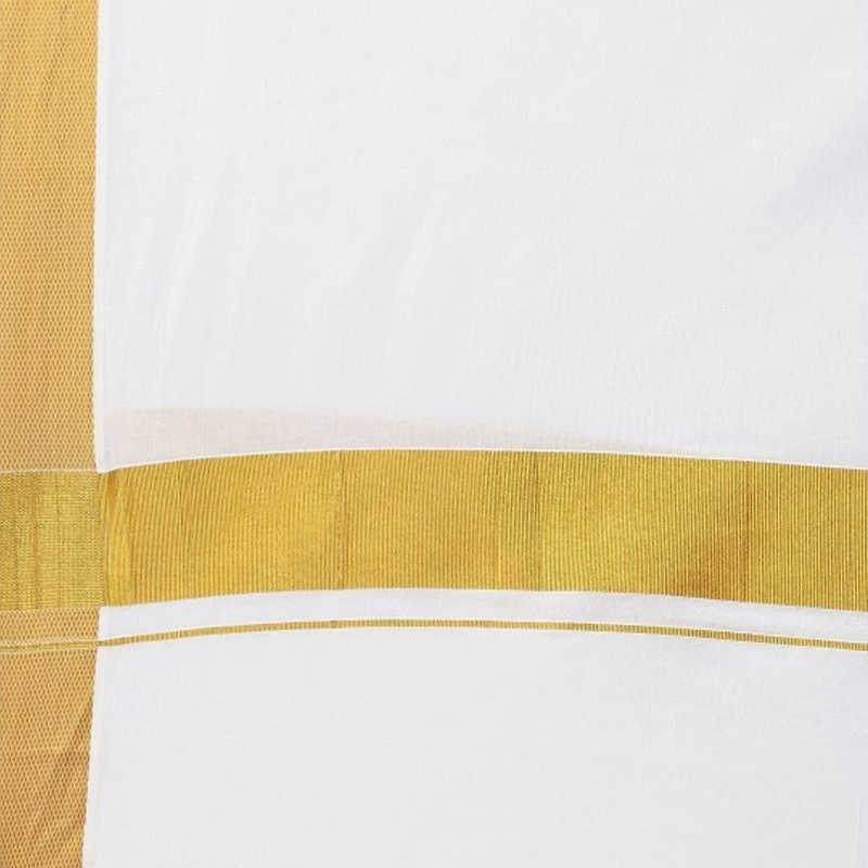 White solid mid-rise dhoti with gold-toned zari border, has a waistband with velcro closure