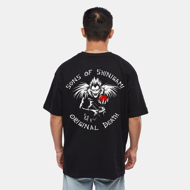 "Black Tshirt for unisex Son of Shinigami printed Regular length Round neck Short, drop shoulder sleeves Knitted cotton fabric Size & Fit Oversized The model (height 6') is wearing a size M Material & Care Cotton Machine Wash" Round neck Sleeveless FEATURES 1. Falls like a cloud: The Fluid Tank Top fabric features an upgrade over regular cotton. The blend of cotton with extra stretch makes it glide over the body smoothly. Our printed Tank Tops for men and men's Solid Tank Tops are perfect for those who want to stand out from the crowd. 2. For that extra stretch: Made of a superior cotton and elastane blend, Fluid Tanks are your go-to lounge essential. These sleeveless solid tanks are perfect for those who love to be on the move. Whether you're at home lounging on a Lazy-Boy or out and about at the beach, these tank tops will look good and feel good, while allowing your body to move freely. 3. High-performance colors: For enhanced color retention, Fluid Tank Tops feature High-IQ Colour Programme dyes. Size & Fit Regular Fit The model (height 6') is wearing a size M Material & Care Cotton Blend. Machine Wash" Sleeve Length : Sleeveless Sustainable : Regular Type : Tank Wash Care : Machine Wash"